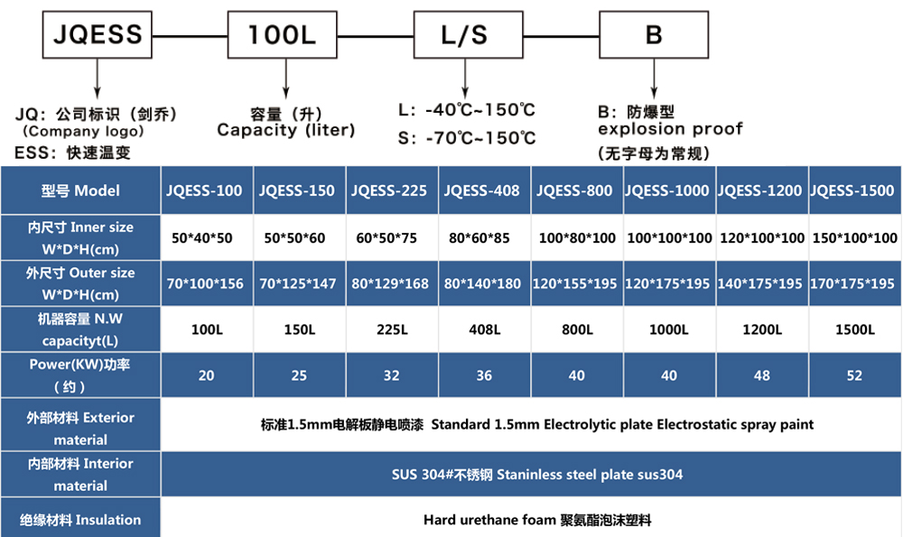 快速溫變試驗(yàn)箱型號命名說明 及 參數(shù)表