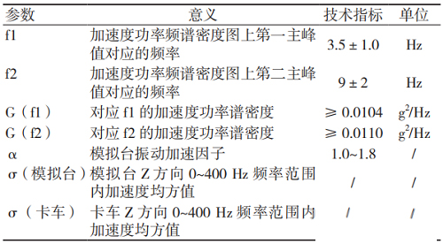 模擬運輸臺的設計參數主要依據《QJ/T 815.2-94產品公路運輸加速模擬試驗方法》[3]設定。該標準中規定了模擬運輸臺的關鍵技術指標,見表1。
