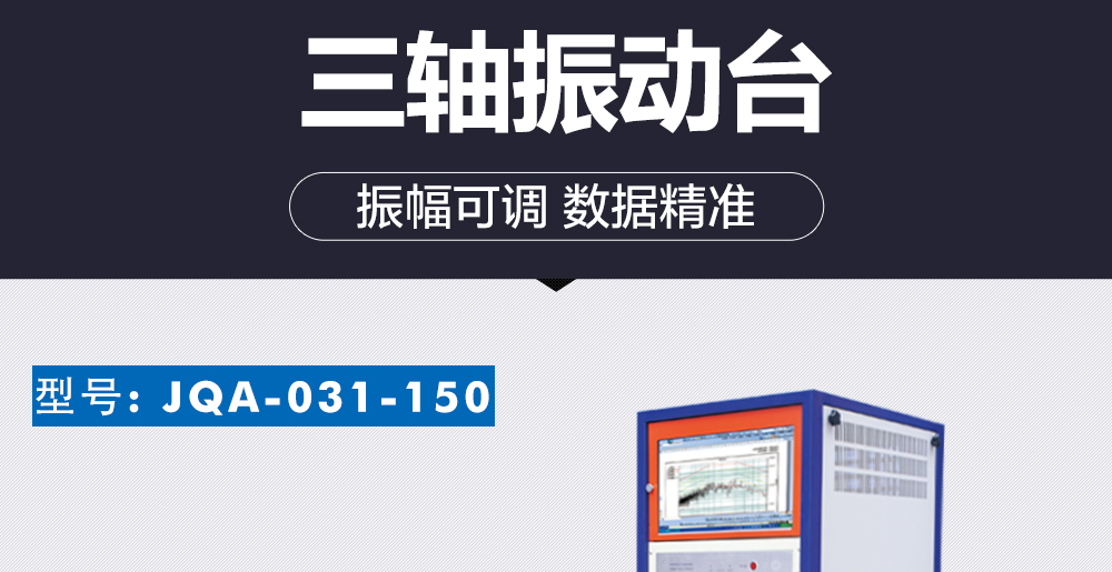 三軸振動臺(型號:JQA-031-150)是由:振動臺、功率放大器和振動測控制系統組成了一套完整的振動試驗系統,依照相關的國家和國際標準(如:MIL-STD、DIN、ISO、ASTM、IEC、ISTA、GB、GJB、JIS、BS等)在實驗室條件下模擬振動環境,測試各種振動試驗應用領域中的沖擊強度和可靠性。在實驗室借助振動試驗機系統可以模擬再現正弦、隨機、諧振搜尋與駐留、典型沖擊和道路仿真等模式。對于產品的質量保證、新品研發都是必不可少的。