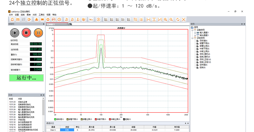 產(chǎn)品型號(hào): JQ-10002 品牌:劍 喬 用途:正弦試驗(yàn)可以控制振動(dòng)臺(tái)實(shí)現(xiàn)定頻(駐留)、掃頻等振動(dòng)試驗(yàn)。控制算法中采用了跟蹤濾波的幅值以及相位檢測(cè)算法,可以實(shí)現(xiàn)對(duì)控制信號(hào)的準(zhǔn)確反饋以及實(shí)時(shí)的閉環(huán)控制。咨詢(xún)熱線:13829135130